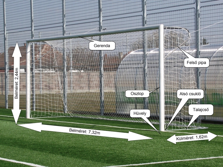 Labdarúgó kapu nagypályás, porfestett alumínium, hüvelyes
