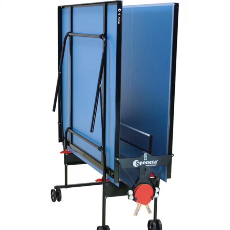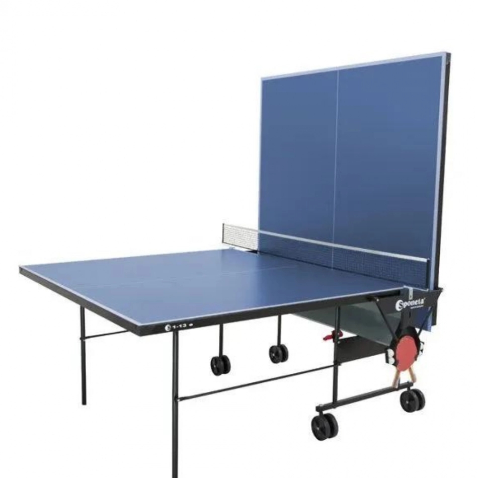A pingpongasztal 1 db ütő- és labdatartót és 1 db Sponeta Club pingpongháló szettett is tartalmaz!