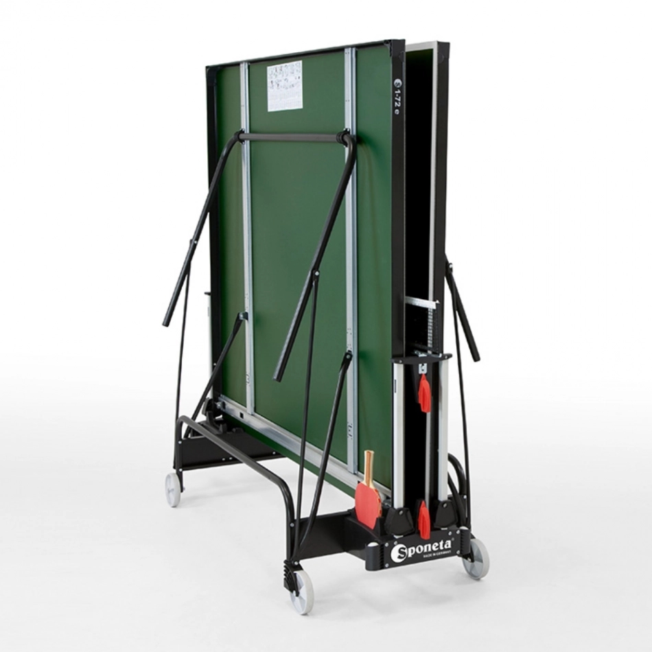 A ping-pong asztal 1 db ütő- és labdatartót és 1 db Sponeta Club pingpongháló szettett is tartalmaz!