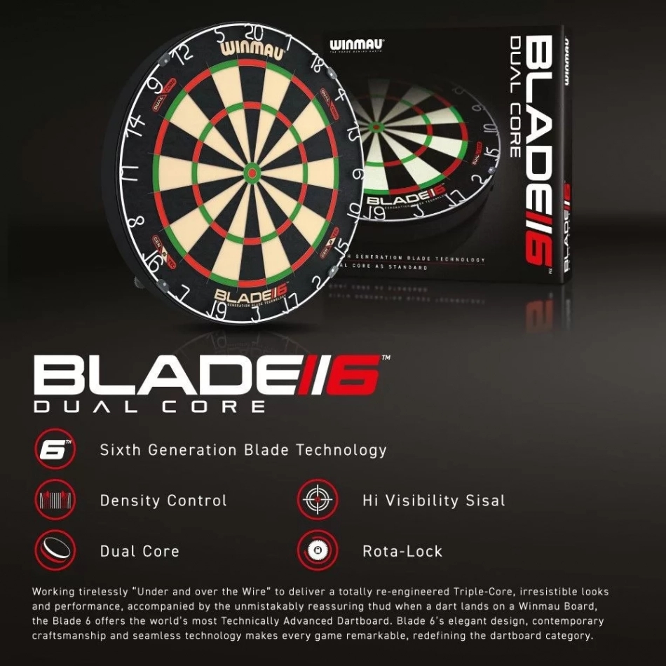 A legfinomabb kelet-afrikai szizálból készült a legigényesebb játékosok számára. A Blade 6 Dual Core professzionális versenyekre javasolt és a World Darts Federation hivatalos specifikációi szerint készült.